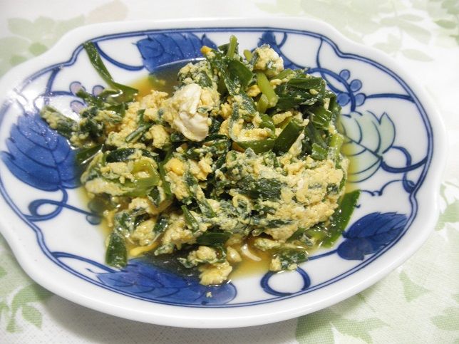 にらの卵とじ。自家菜園のニラは、少し硬めだったが、手作り感があって、いいぞいいぞ。