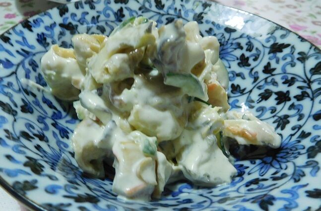 つぶ貝のサラダ。歯ごたえのある大ぶりの身が、いいぞいいぞ。