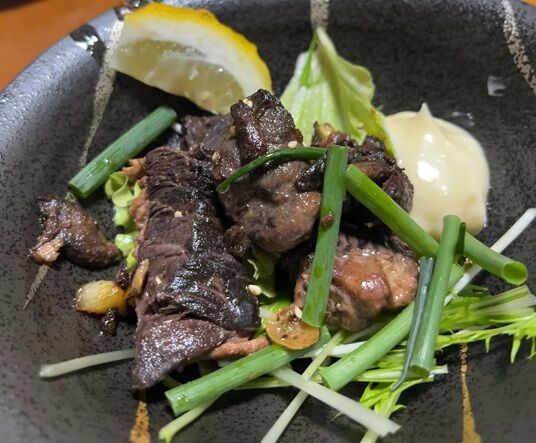 鮪の血合いステーキ。ほっぺたが落ちます。いいぞいいぞ。