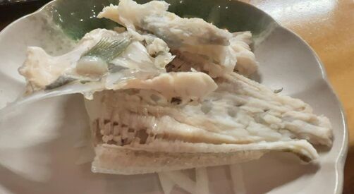 活ハギ焼き身。残った身は焼いて出してくれました。いいぞいいぞ。