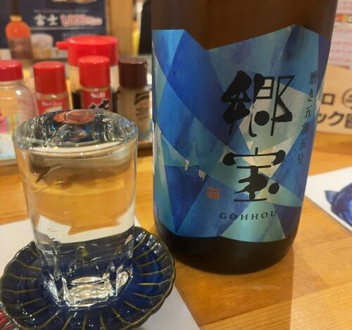 郷宝・純米。函館の地酒です。ほんのり甘みを感じますが辛口の切れがあります。いいぞいいぞ。