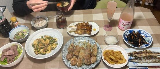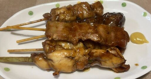 焼き鳥・たれ。鶏もも・鶏皮・レバー・豚です。いいぞいいぞ。