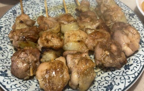 焼き鳥・塩。食べ応えのあるでっかい鶏ももです。いいぞいいぞ。