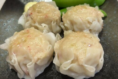 烏賊焼売。白身魚のすり身に烏賊がたっぷり入っています。いいぞいいぞ。